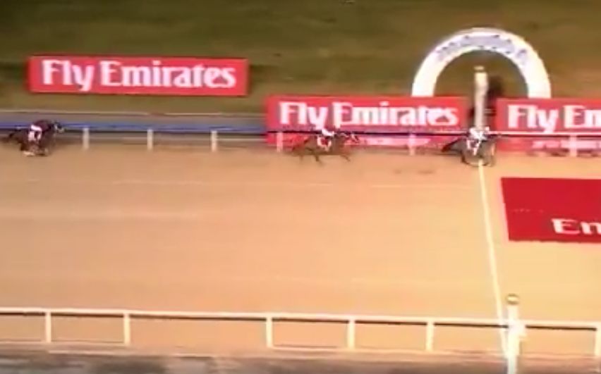 【エピカリスは僅差2着】UAEダービー、直線ではエピカリスとサンダースノーの一騎打ちとなり、最後は僅差でサンダースノーが先着。鞍上は日本でもお馴染みC.スミヨン騎手。惜しかった~! #競馬 #keiba