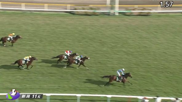 新潟記念はブラストワンピースが中団後方待機から大外突き抜けて、35年ぶりの3歳馬による制覇を果たしました。2着にメートルダール、3着ショウナンバッハで差し勢が上位を占めました。なおメドウラークは5着、サマー2000シリーズ13点となり優勝を決めています。