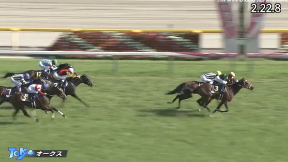 勝ちタイムは2分間22秒8のオークスレコード。
