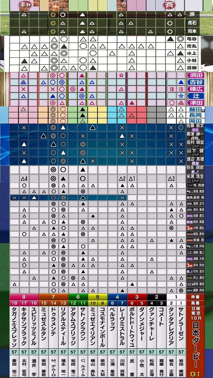 安藤勝◎ドゥラメンテ ○リアルスティール ▲サトノクラウン △キタサンブラック