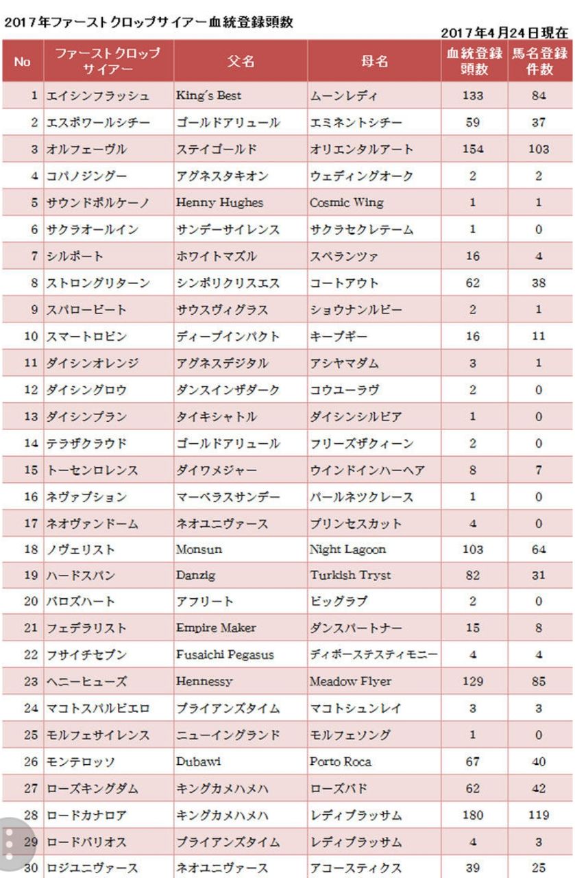 このクラスの種牡馬で4年目に満口は凄いわ