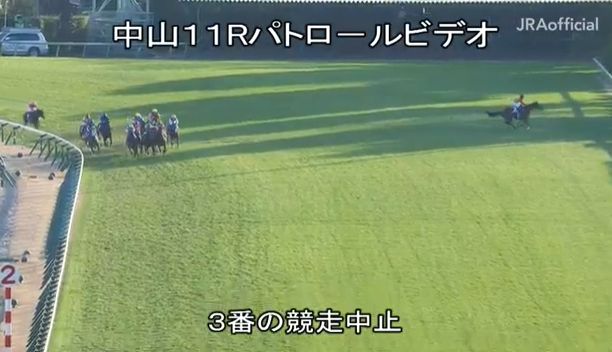 そこからコースを逸走して外ラチへ。騎乗した三浦は落馬してまさかの競走中止となった。