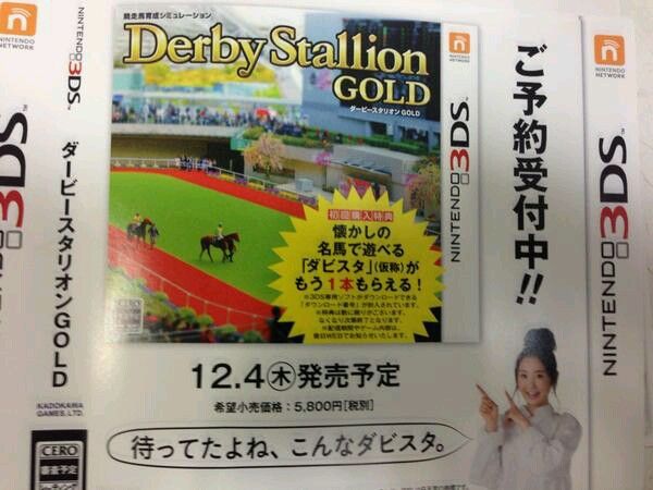 3DS用ソフト『ダービースタリオンGOLD』の発売日が12月4日に決定したことが判明しました。価格は6,264円。